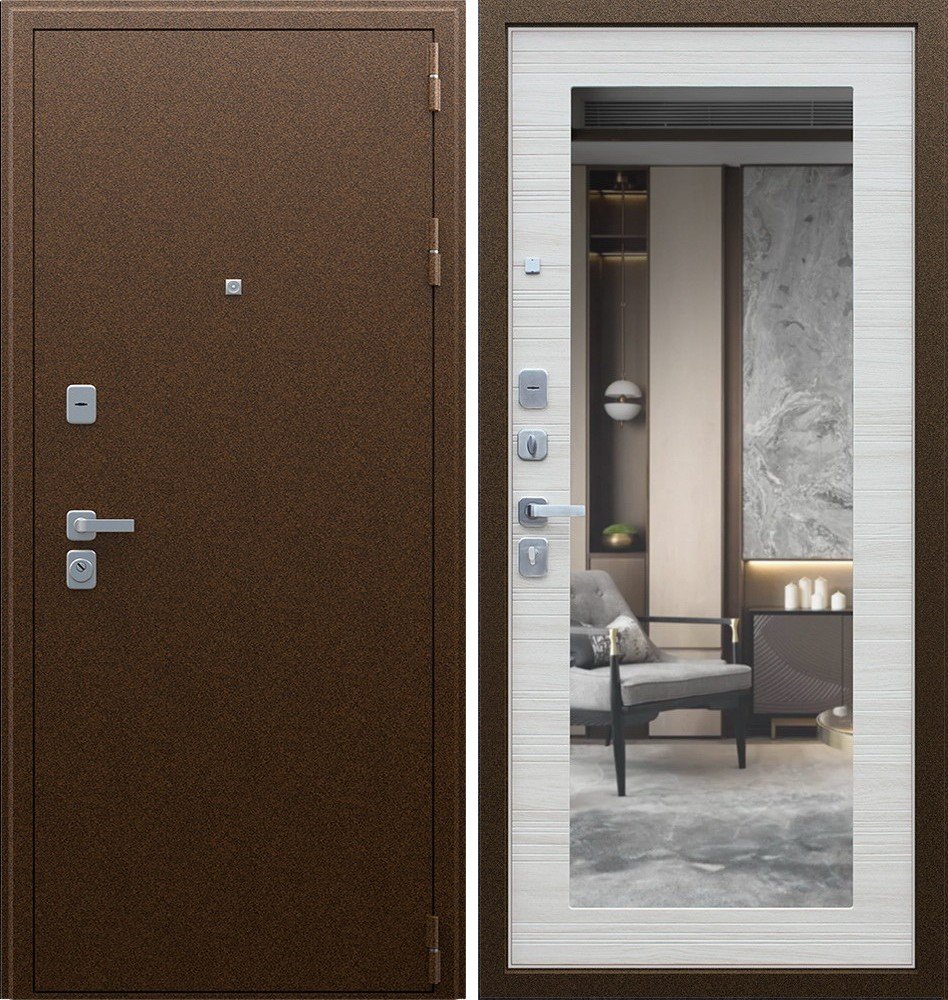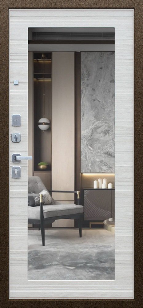 Надежная входная Дверь Спартак с зеркалом Акация Светлая Поперечная премиум класса по цене 36 427 руб. Большая толщина стали защитит от проникновения в ваш дом, квартиру или коттедж. Используется очень качественная фурнитура: замки, цилиндры, ручки, защелки. Покрытие и отделка двери изготовлено под внимательным контролем производителя. Дверь имеет долгий срок службы и гарантию.