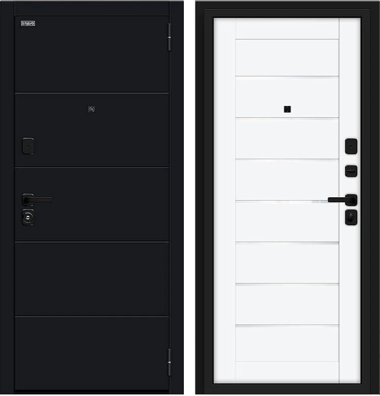 Надежная входная Дверь Браво Прайм/SBlack-Black Shell/White Silk премиум класса по цене 40 227 руб. Большая толщина стали защитит от проникновения в ваш дом, квартиру или коттедж. Используется очень качественная фурнитура: замки, цилиндры, ручки, защелки. Покрытие и отделка двери изготовлено под внимательным контролем производителя. Дверь имеет долгий срок службы и гарантию.